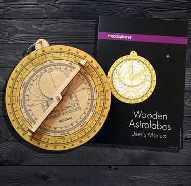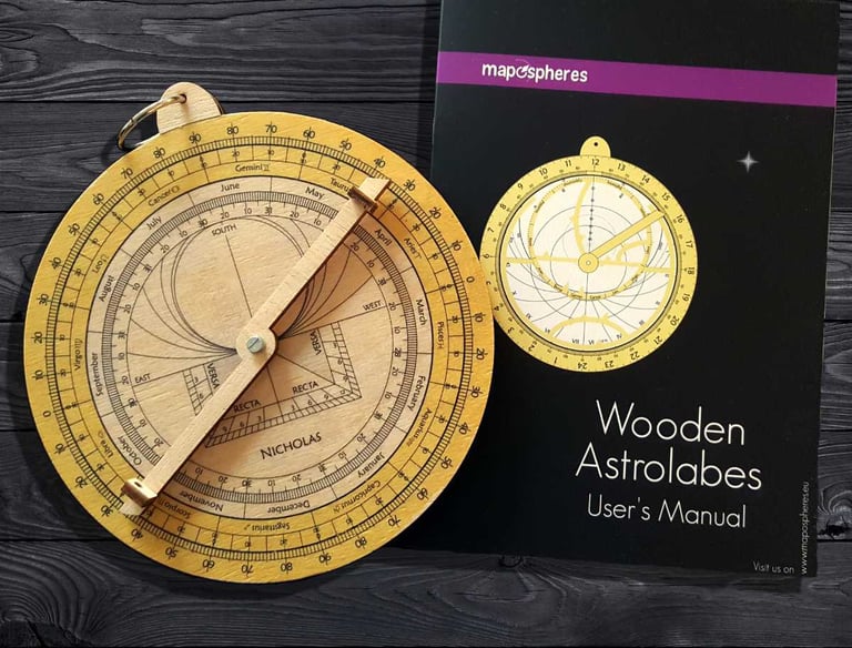 Our astrolabes are unique wooden pieces prepared for your latitude!